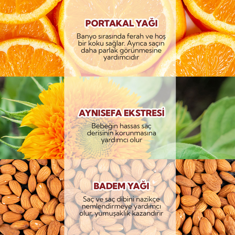 Gerçek Portakal yağından elde edilen organik bebek şampuanı
