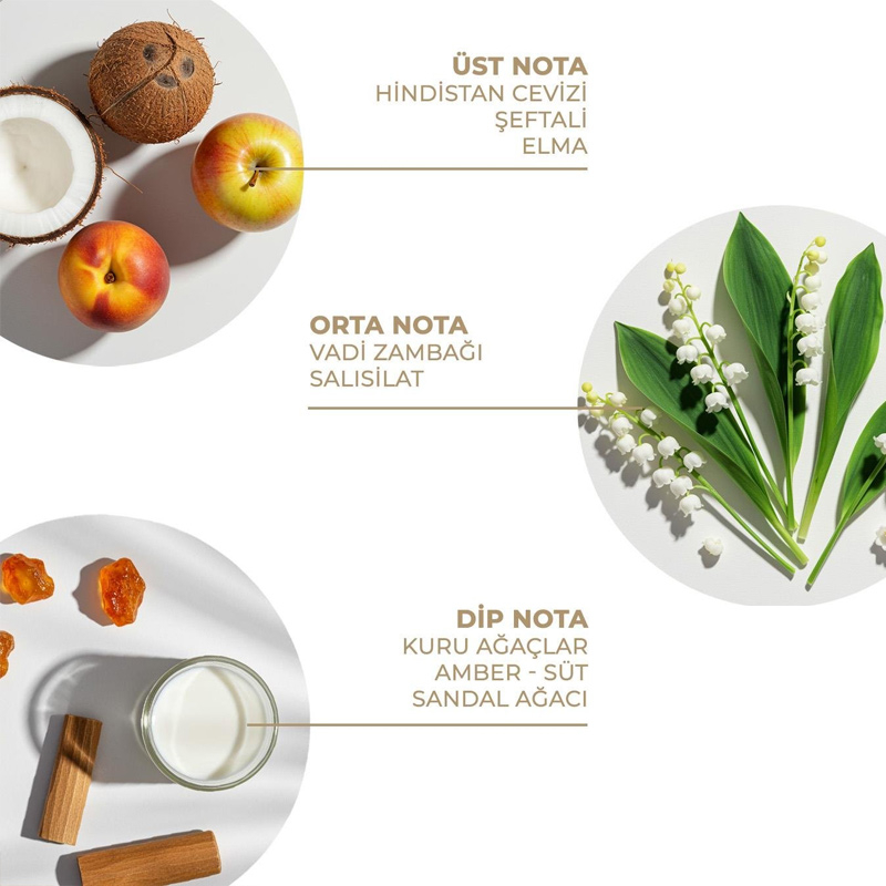 Hindistan Cevizi, Şeftali, Elma, Amber, Sandal Ağacı tropikal enerjiyi odunsu zarafetle buluşturan bir nefes. Hızlıca emilir ve cildin uzun süre güzel kokmasını sağlayarak, güne tertemiz bir başlangıç yapmanıza yardımcı olur.