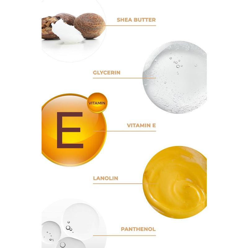 Aqua, Glycerin, Butyrospermum Parkii Butter, Allantoin, Panthenol, Tocopheryl Acetate, Stearyl Alcohol, Glyceryl Stearate, Sodium Levulinate, Sodium Anisate, Stearic Acid, Beeswax, Phenoxyethanol, Parfum, Lanolin, Ethylhexylglycerin.