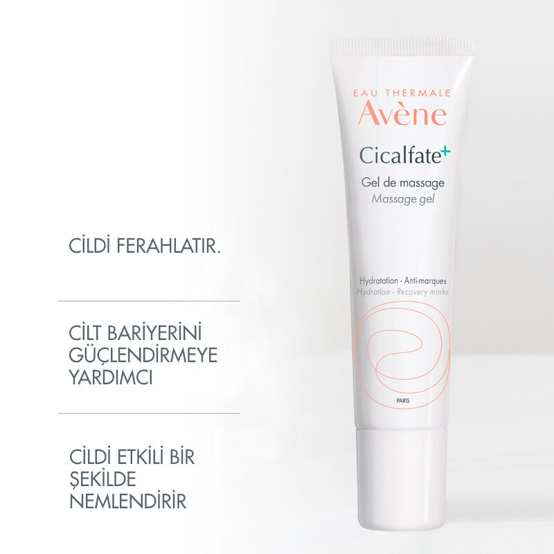 • Hassas Ciltler İçin Ferahlatıcı Etki Cicalfate+ Cildin Doğal Bariyerini Güçlendirmeye Yardımcı Masaj Jeli, içeriğindeki Avene Termal Su, C+ Restore, Bakır – Çinko Sülfat, Hyaluronik Asit ve Silikon ile hassas ciltlerin ferahlamasına cildin doğal bariyerinin güçlenmesine yardımcı olur.