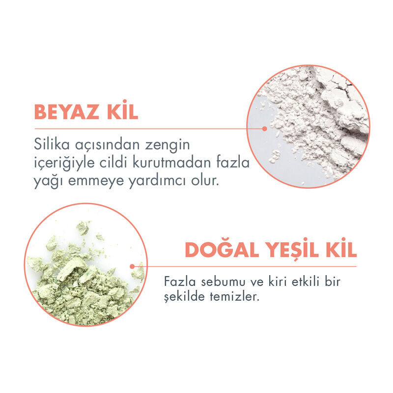 İçeriğindeki yeşil (valey) ve beyaz (kaolin) kil ikilisi sayesinde cildi arındırır, matlaştırır ve gözenekleri sıkılaştırmaya yardımcı olur.