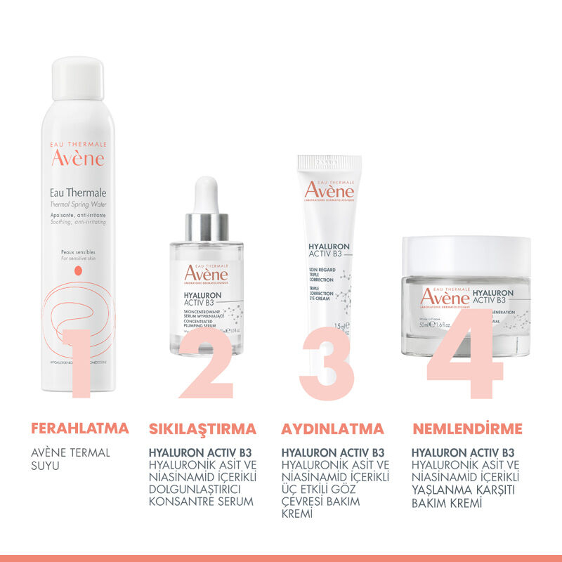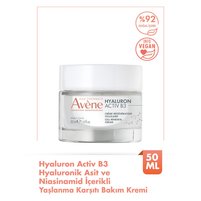 Hyaluron Activ B3 Hyaluronik Asit ve Niasinamid İçerikli Krem, tüm hassas cilt tiplerinde kırışıklık ve elastikiyet kaybına karşı bakım kremi olarak tercih edilebilir. Kırışıklık ve ince çizgilere sahip donuk, mat, sıkılık ve elastikiyet kaybı yaşayan ciltler için bakım sunar.