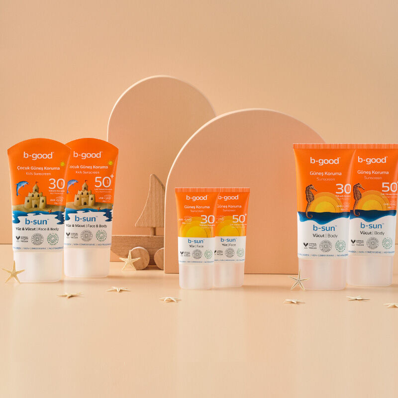 - b-good b-sunTM Güneş Koruma SPF 30 | Vücut, UVA ve UVB ışınlarını önleme yardımcı, geniş spektrumlu PA++++ yüksek koruma sağlayan fotostabil formüle sahiptir.