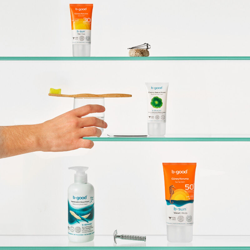 - b-good b-sunTM Güneş Koruma SPF 50 | Vücut, UVA ve UVB ışınlarını önleme yardımcı, geniş spektrumlu PA++++ yüksek koruma sağlayan fotostabil formüle sahiptir.