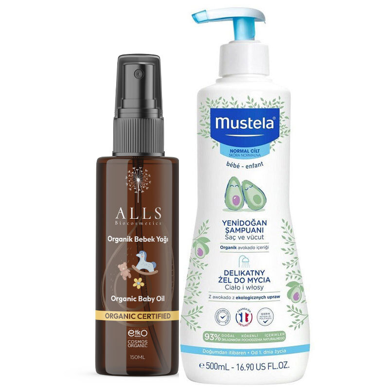 Mustela Gentle Cleansing Gel Yenidoğan Şampuanı 500 ml-Alls Biocosmetics Organik Bebek Yağı 150 ml