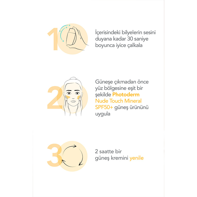 Güneşe çıkmadan önce yüz bölgesine bolca ve eşit bir şekilde uygulayınız.
