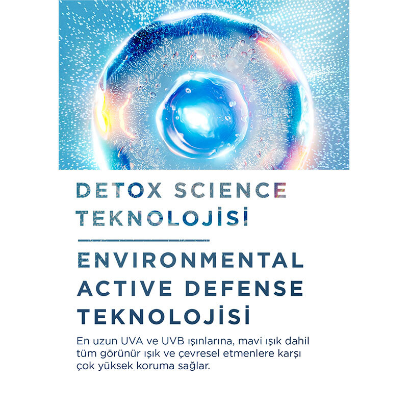 Detox Science Teknolojisi sayesinde çevresel etmenlere karşı arındırıcı antioksidan etki sağlar.