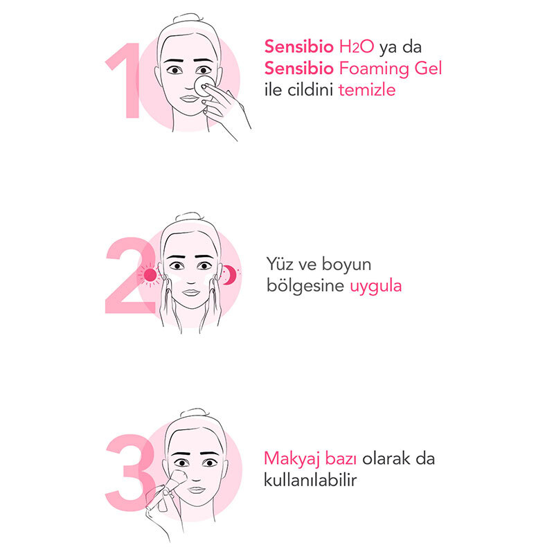 - Temizlenmiş yüz ve boyun bölgesine günde 1 veya 2 kez uygulayın.