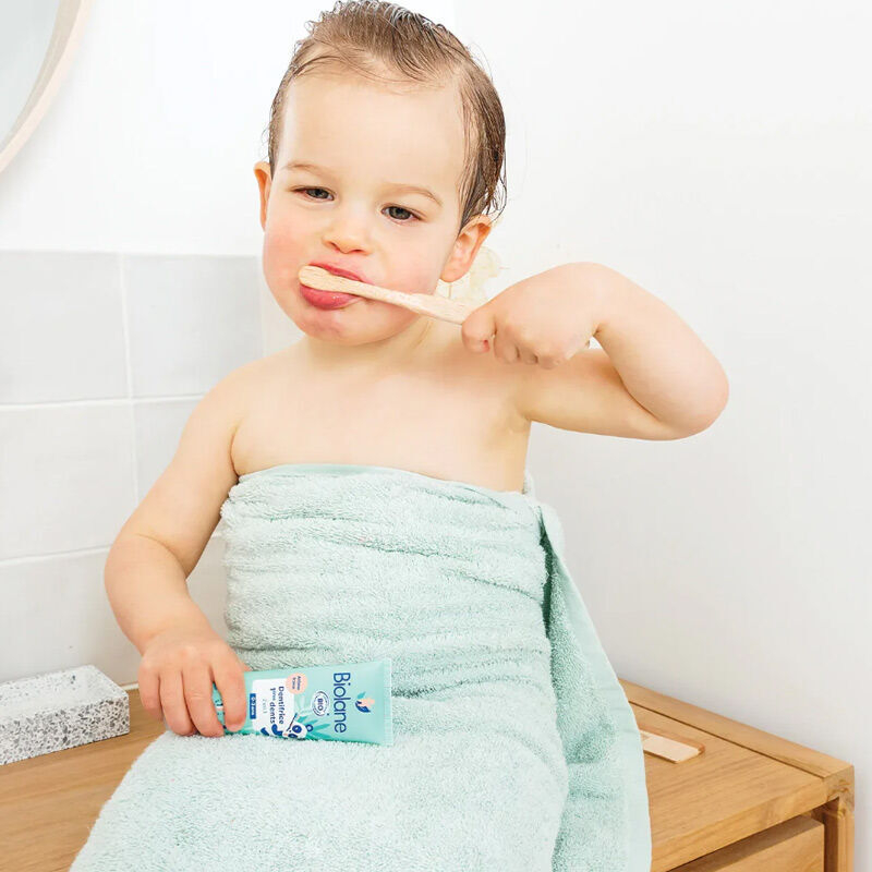 Organik Sertifikalı Biolane 2’si 1 arada Diş Macunu bebeğinizin süt dişlerini nazikçe temizler ve diş çıkarmadan kaynaklanan damaktaki hassasiyete karşı bakım sağlar.