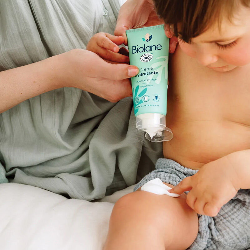 Organik sertifikalı Biolane yüz ve vücut nemlendirici krem, bebeklerin hassas ciltleri için idealdir.