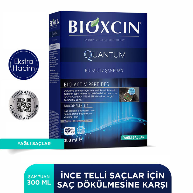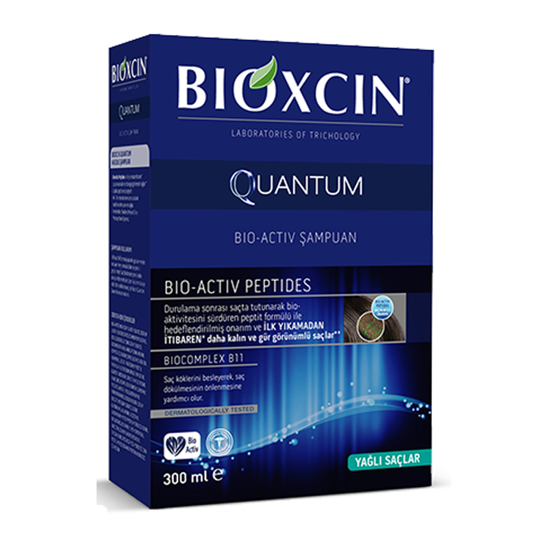 - Bioxcin Quantum Bio-Activ Şampuan, 18 aminoasitten oluşan ve saça tutunan peptitler ile zenginleştirilmiş formülü sayesinde, saçların ilk yıkamadan itibaren daha kalın ve gür görünümlü olmasını sağlar.