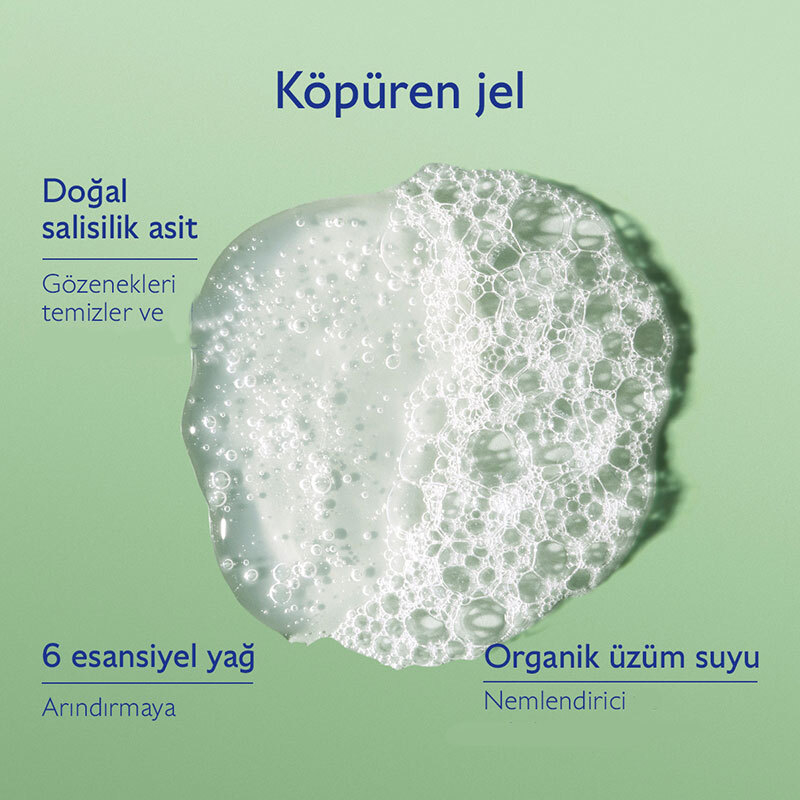 Doğal Salisilik Asit, Organik üzüm suyu, 6 arındırıcı esansiyel yağ içeren temizleme jeli