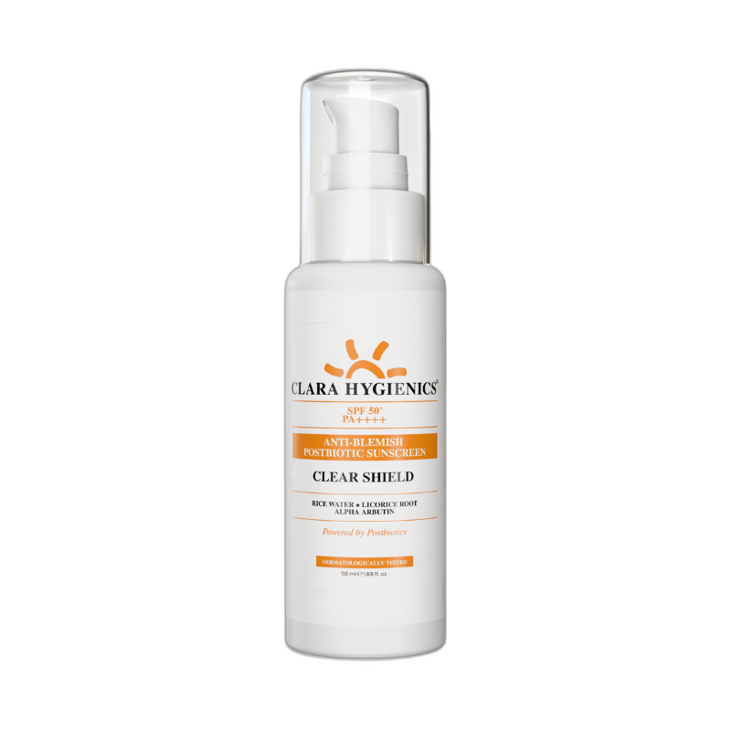 Clara Hygienics Clear Shield 50+ SPF Anti-Blemish Posbiotic Sunscreen 50 ml