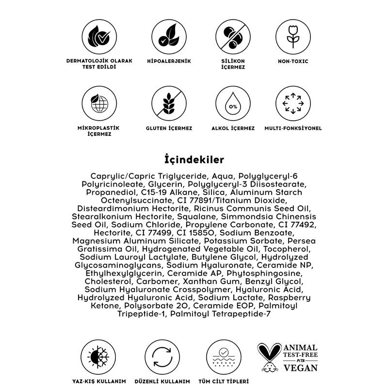 Serum içerikleri sayesinde nemlendirir, besler ve cilt bariyerini güçlendirmeye yardımcı olur.