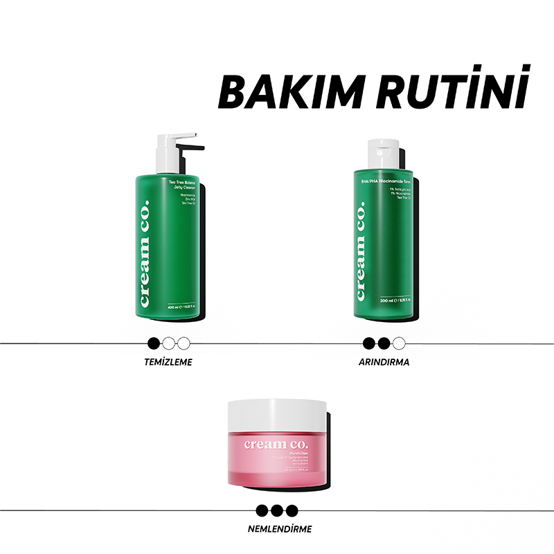 Çay ağacı yağı ve çinko PCA ile cildi arındırır.