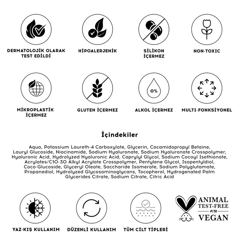 ● Jelden köpüğe dönüşen yapısı ile cildi kurutmadan nazikçe temizler.