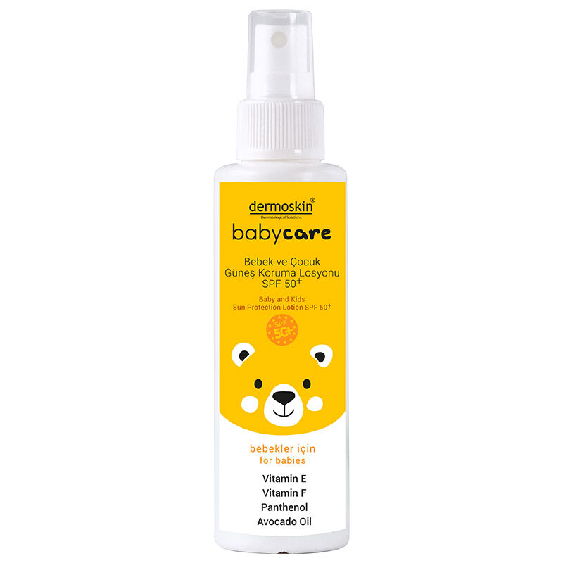 - Dermoskin Baby and Kids Sun Protection Lotion SPF 50+ yüksek koruma sağlayan UVA ve UVB filtreleriyle çocuğunuzun cildine güneşin zararlı etkilerinden güvenli bir şekilde korur.