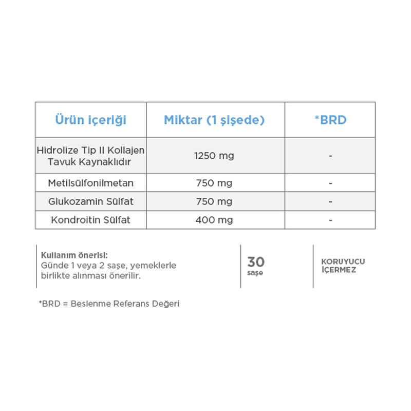 18 yaş üstü yetişkinler için günde 1 veya 2 saşe yemeklerle birlikte alınması önerilir.