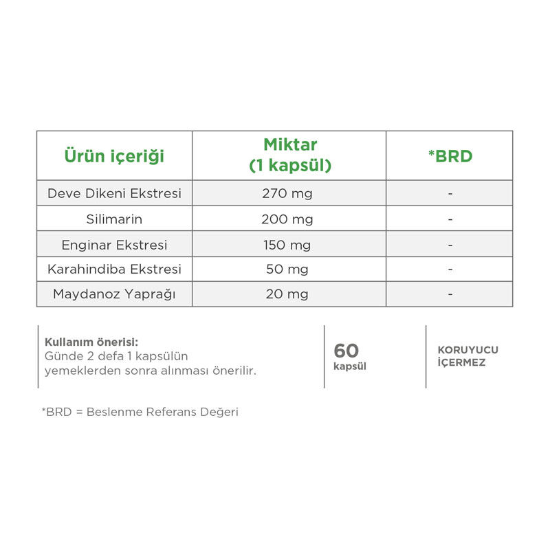 | Meryem ana dikeni ekstresi | 270 mg |