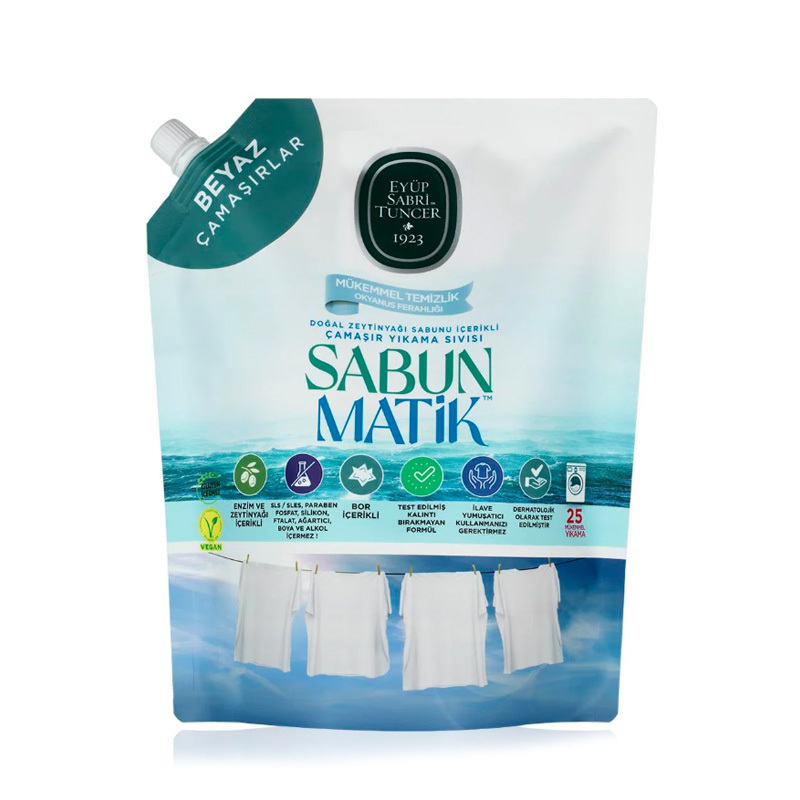 - Eyüp Sabri Tuncer’den çamaşırlarınızda mükemmel temizlik sağlayacak yepyeni ürün Sabun Matik Beyazlar İçin Çamaşır Yıkama Sıvısı!