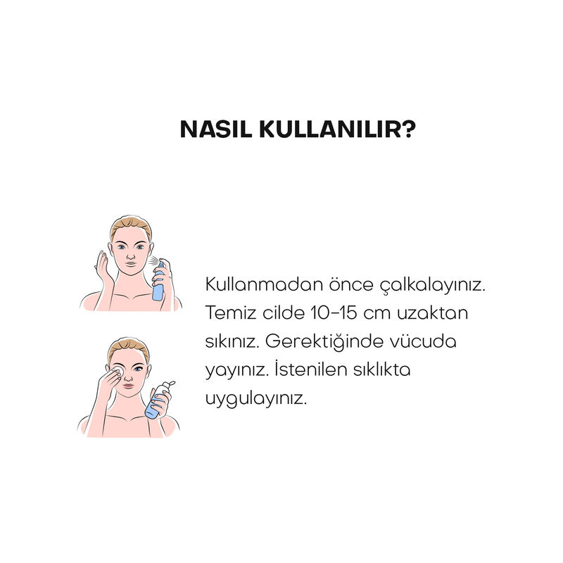 Yüz ve Vücut Kullanımı: Hassas ciltlere uygun formülü ile hem yüz hem de vücutta güvenle kullanılabilir. Ürün, cildi ferahlatma ve nemlendirme amacıyla geliştirilmiştir. Günlük bakım için kullanıma uygundur.