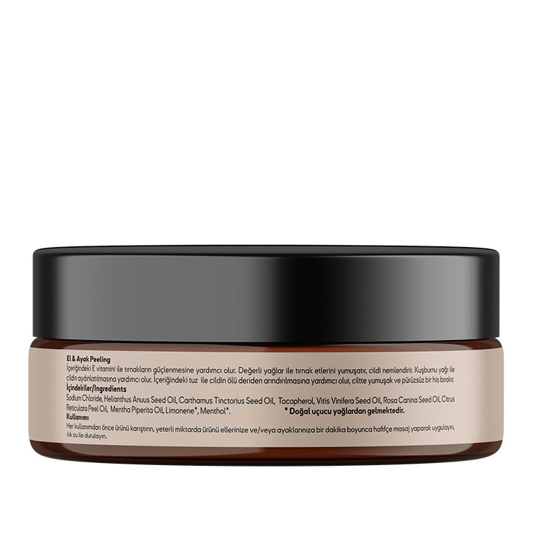 Zengin içeriği sayesinde el ve ayak bakımında yumuşak ve pürüzsüz bir his bırakmayı hedefleyen peeling