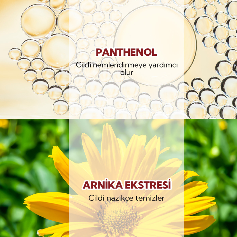 Arnika ve Aynısefa ekstreleriyle cildinizi nazikçe temizler ve nemlendirir.