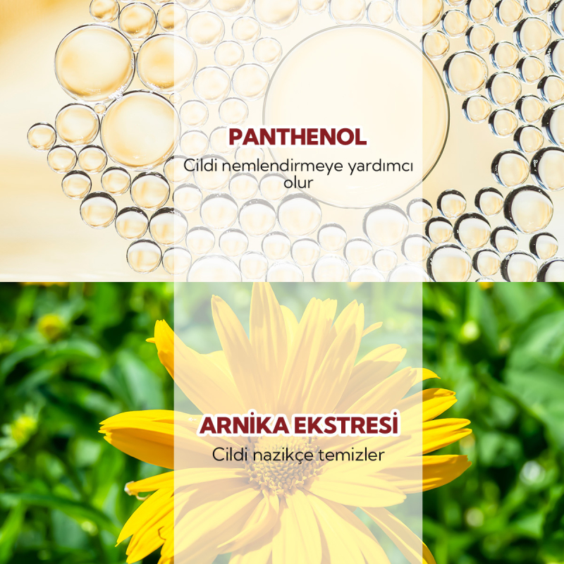 Arnika ve Aynısefa ekstreleriyle cildinizi nazikçe temizler ve nemlendirir.