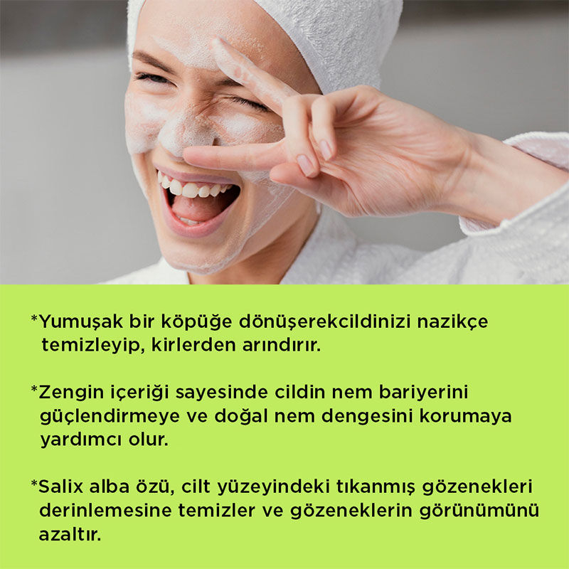 İçeriğinde bulunan Salix Alba gözenekleri temizler ve doğal cilt bariyerini korurken, Centella Asiatica, Calendula, Immortelle cildi besler, tazeler ve cilde parlaklık sağlar.