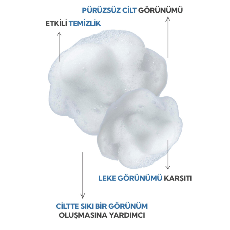 - Köpük formu sayesinde kolay bir şekilde uygulayabilir, aynı zamanda cildinizi etkili ve nazik bir şekilde temizleyebilirsiniz.