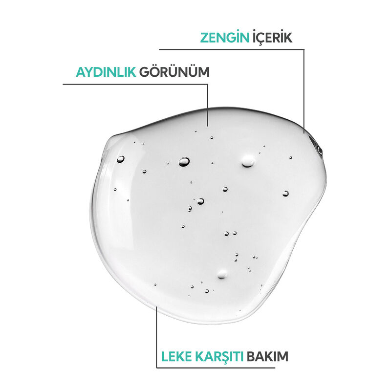 - Hyaluronik asit, pantenol ve niasinamid ile cilde aydınlık bir görünüm sağlayarak, cildi nemlendirir.