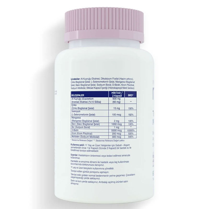 | At Kuyruğu (Equisetum Arvense) Ekstresi (%10 Silika) | 600 mg (60 mg Silika) | - |