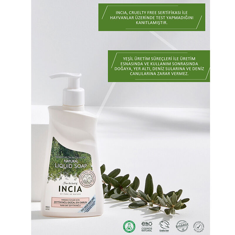 Ürün Adı: INCIA Hassas Ciltler İçin Zeytinyağlı Doğal Sıvı Sabun