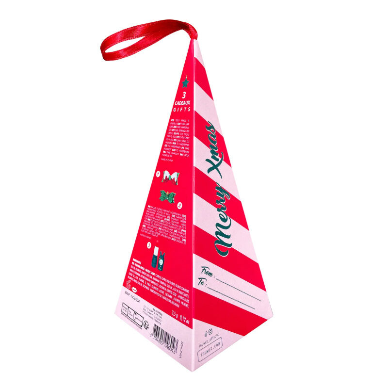 İçerisinde vişne aromalı bir adet dudak nemlendiricisi ve iki adet klips toka bulunan külah şeklinde hediye kutusu yılbaşı ağacınıza da ayrı bir hava katacak.