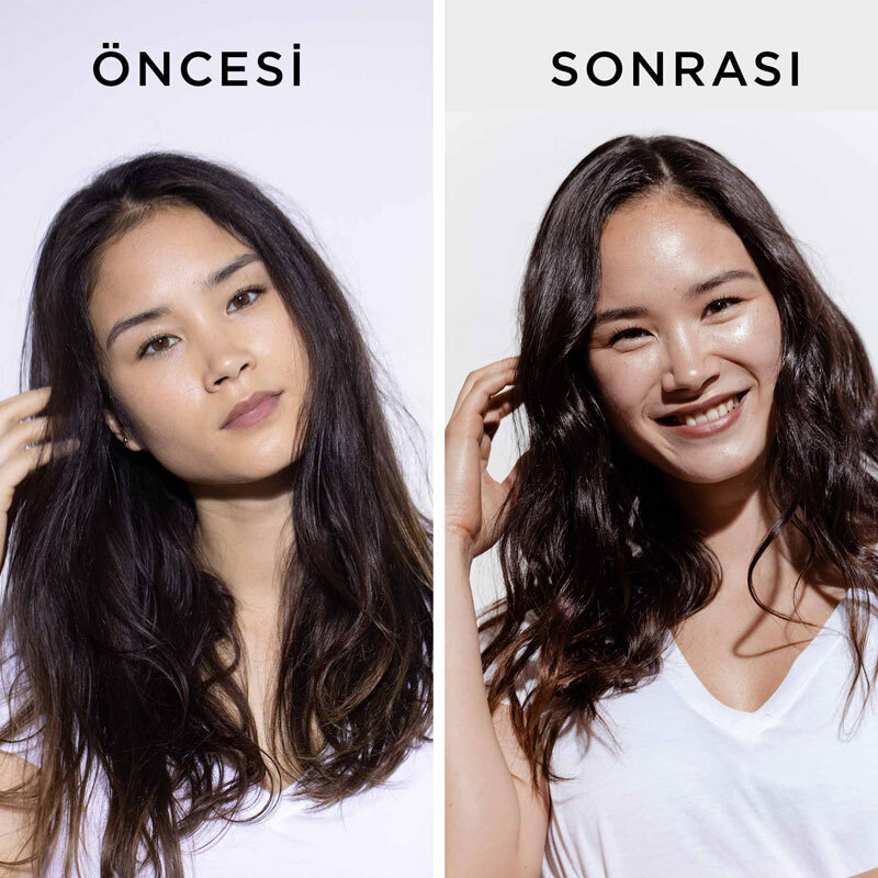 Adım 2: 1. adımı tekrar edin. Eğer gerekliyse saçın boylarına biraz daha ürün ekleyin. Masaj yaparak durulayın.