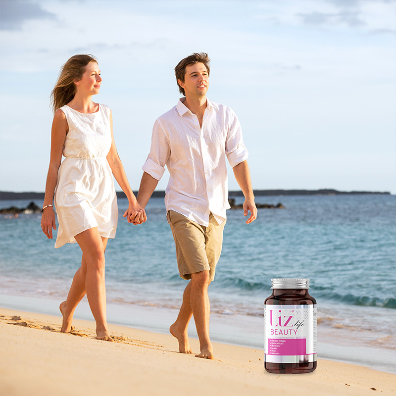 Hidrolize kolajen, Biotin,Hyaluronik asit ve Resveratrol İçeren takviye edici gıda.