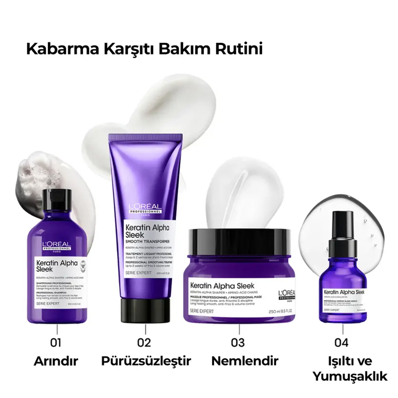 Keratin-Alpha teknolojisi ile geliştirilmiş bu profesyonel bakım, saçın daha pürüzsüz, kontrollü ve kolay şekil alan bir yapıya kavuşmasına yardımcı olur.