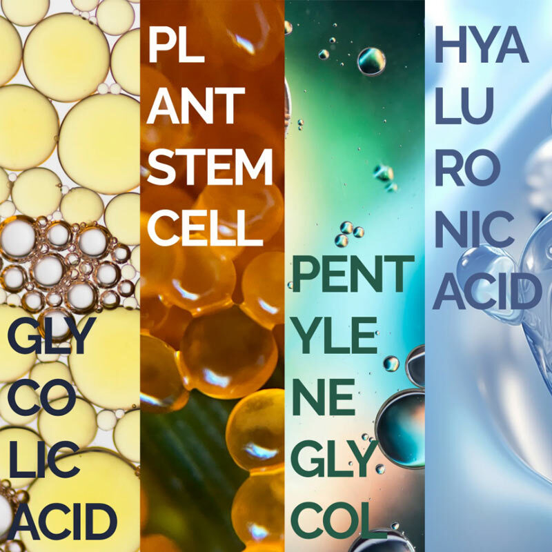 Aqua (Water), Glycolic Acid, Pentylene Glycol, Glycerin, Daucus Carota Sativa (Carrot) Juice, Ethoxydiglycol, Salicylic Acid, Vaccinium Myrtillus Fruit Extract, Maltodextrin, Xanthan Gum, Propylene Glycol, Lactic Acid, Citric Acid, Tartaric Acid, Malic Acid, Pyrus Malus (Apple) Fruit Extract, Vitis Vinifera (Grape) Leaf Extract, Citrus Medica Limonum (Lemon) Fruit Extract, Saccharum Officinarum (Sugarcane) Extract, Sodium Hyaluronate Crosspolymer, Propanediol, Potassium Sorbate, Hydrolyzed Glycosaminoglycans, Sodium Hyaluronate, Hydrolyzed Hyaluronic Acid, Hyaluronic Acid, Tasmannia Lanceolata Fruit/Leaf Extract, Benzyl Glycol, Centella Asiatica Extract, Ozonized Oryza Sativa (Rice) Callus Culture Extract, Aloe Barbadensis Leaf Juice, Panthenol, Phenoxyethanol, Benzoic Acid, Ethylhexylglycerin, Raspberry Ketone, Sodium Benzoate, Tetrasodium EDTA.