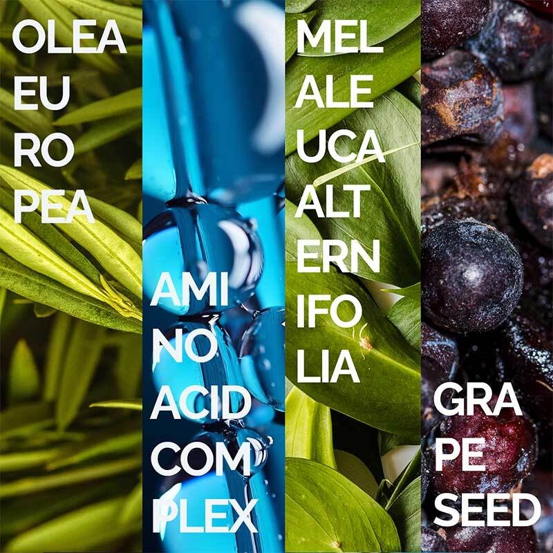 Aqua (Water), Lauryl Glucoside, Cocamidopropyl Betaine, Disodium Laureth Sulfosuccinate, Sodium Cocoamphoacetate, Glycerin, Sodium C14-16 Olefin Sulfonate, Disodium Cocoamphodiacetate, Amodimethicone, C11-15 Pareth-7, Laureth-9, Trideceth-12, Sodium PCA, Sodium Cocoyl Glutamate, Sodium Lauryl Glucose Carboxylate, Polysorbate 20, Niacinamide, Glycol Distearate, Polyquaternium-10, Guar Hydroxypropyltrimonium Chloride, Phenoxyethanol, Parfum (Fragrance), Coco-Glucoside, Arginine, Olea Europaea (Olive) Leaf Extract, Melaleuca Alternifolia Leaf Oil, PEG/PPG-120/10 Trimethylolpropane, Trioleate, Laureth-2, Glyceryl Oleate, Glyceryl Stearate, Tocopheryl Acetate, Saccharum Officinarum Extract, Betaine, Hexylene Glycol, Vitis Vinifera Seed Extract, Citrus Limon Fruit Extract, Sodium Lactate, Aspartic Acid, Pyrus Malus (Apple) Fruit Extract, PCA, Ethylhexylglycerin, Camellia Sinensis Leaf Extract, Hexapeptide-11, Glycine, Alanine, Serine, Valine, Proline, Threonine, Isoleucine, Histidine, Phenylalanine, Benzoic Acid, Citric Acid.
