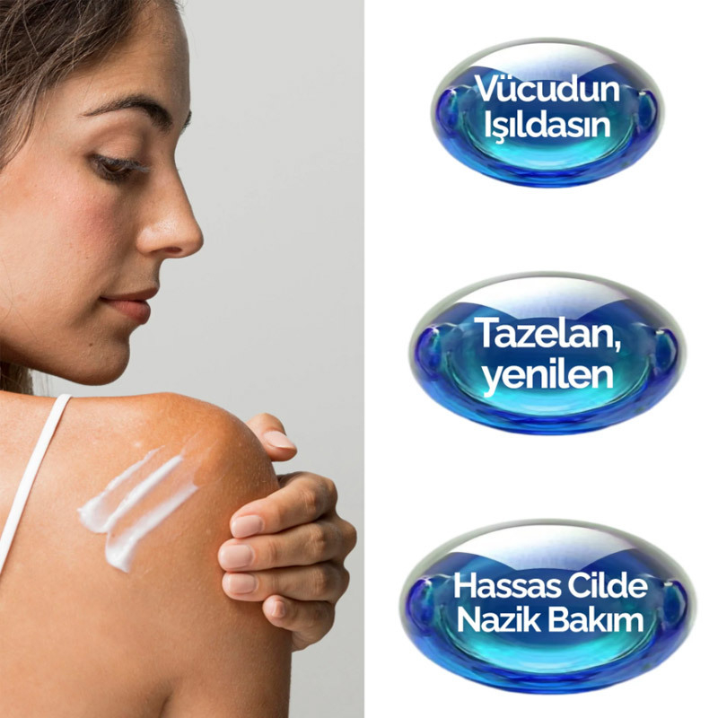 - Yoğun beyazlık ve ışıltı kazandıran aktif içerikleri ile cildin renk dengesinin ve homojen görünümünün sağlanmasını ve canlı görünümünü destekleyen vücut losyonudur.