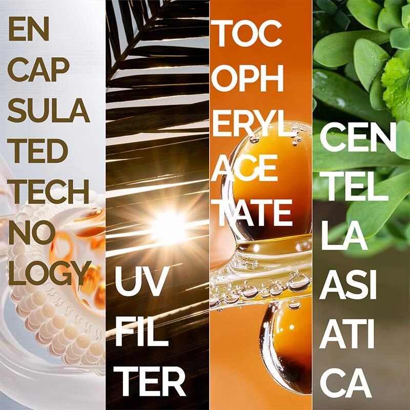 Aqua, Glyceryl Stearate, Caprylic/Capric Triglyceride, Titanium Dioxide/CI 77891, Glycerin, C12-15 Alkyl Benzoate, Cyclopentasiloxane, Propylene Glycol, Potassium Cetyl Phosphate, Dimethicone, PEG-100 Stearate, Diethylamino Hydroxybenzoyl Hexyl Benzoate, Ethylhexyl Triazone, Propanediol, Bis-Ethylhexyloxyphenol Methoxyphenyl Triazine, Lecithin, Dimethiconol, Phenoxyethanol, Ceteareth-20, Ceteareth-12, Cetearyl Alcohol, Cetyl Palmitate, VP/Eicosene Copolymer, Scenedesmus Rubescens Extract, Pentylene Glycol, Sodium PCA, Butyrospermum Parkii Butter, Ethylhexylglycerin, Tocopheryl Acetate, Bisabolol, Panthenol, Glycine Soja Seed Extract, Centella Asiatica Leaf Extract, Xanthan Gum, Parfum, Hydroxyacetophenone, Chlorphenesin, Calcium Chloride, Tetrasodium EDTA, Citric Acid, Potassium Sorbate.