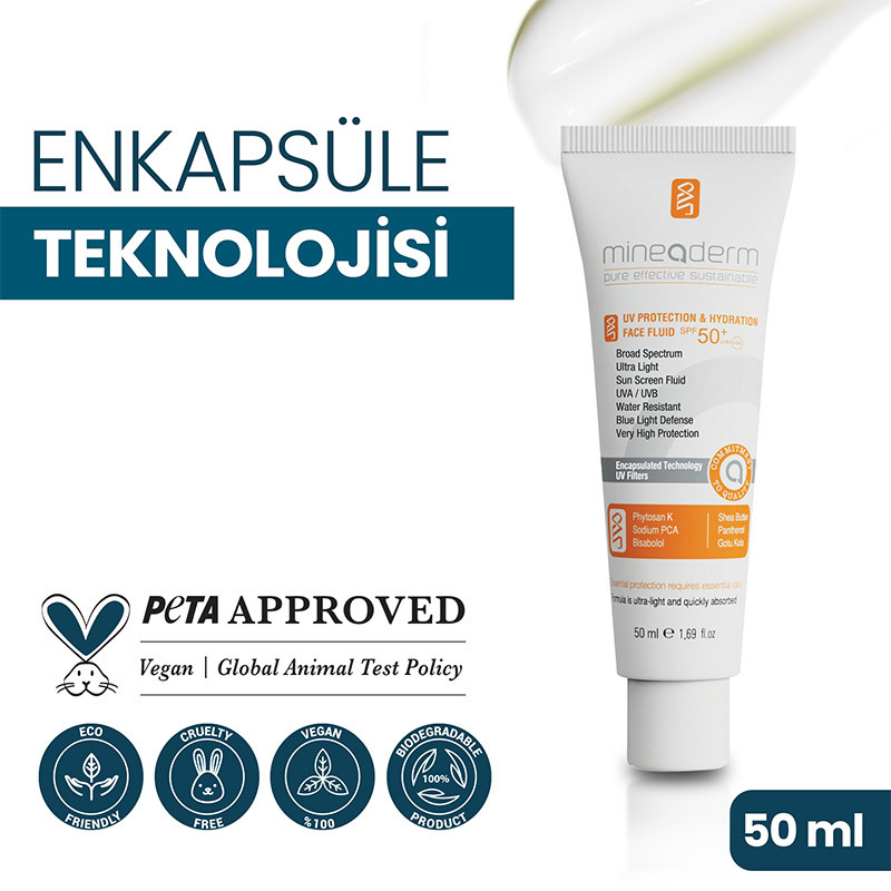 - UV Protection & Hydration Face Fluid SPF 50+, maksimum geniş spektrumlu güneş koruması sağlayan günlük kullanım için geliştirilmiş bir formüldür.