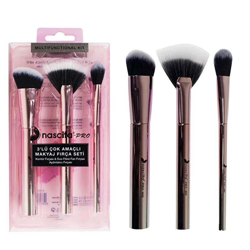 Nascita Pro Metalik Çok Amaçlı Makyaj Fırça Seti 3lü -103
