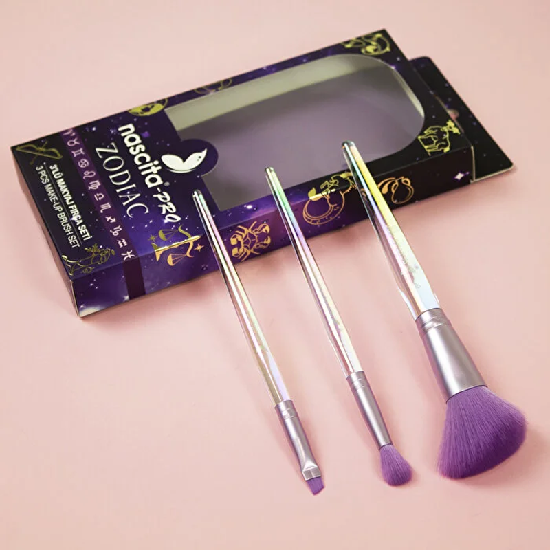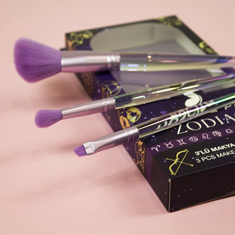 Üç parçadan oluşan Pro Zodiac makyaj fırça seti, makyaj rutininizi kolaylaştırmak için tasarlanmıştır;