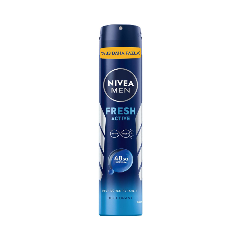 - NIVEA MEN Erkek sprey deodorant Fresh Active içeriğindeki okyanus özleri ile uzun süren ferahlık verir.