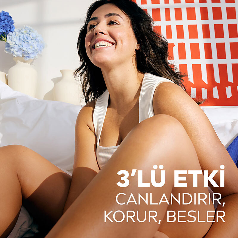 Hızlı emilen yoğun formülü sayesinde vücutta yağlı ve yapışkan his bırakmaz.