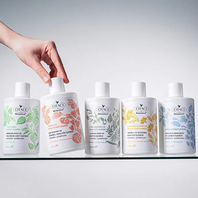 OTACI Botanics+ Kepek Karşıtı Bitkisel Bakım Şampuanı-Duvar Sarmaşığı ve Çinko formülünde bulunan Duvar Sarmaşığı özü sayesinde kepek oluşumuna karşı bakım sağlar.