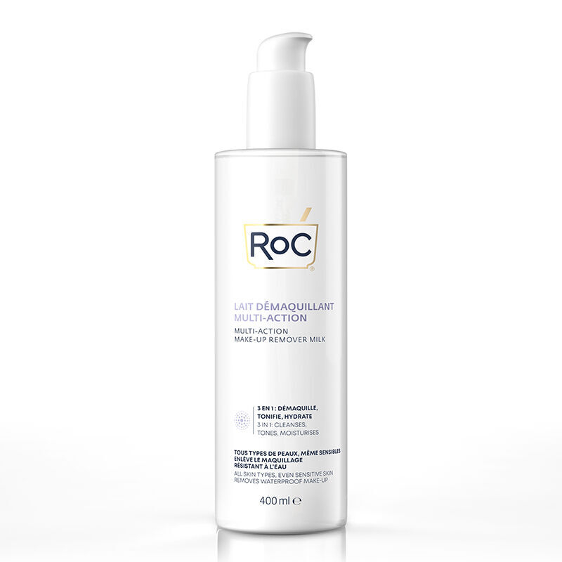 - RoC Multi-Action Make-Up Remover Milk 400ml, makyajı çıkaran 3'ü 1 arada su geçirmez bir süttür.