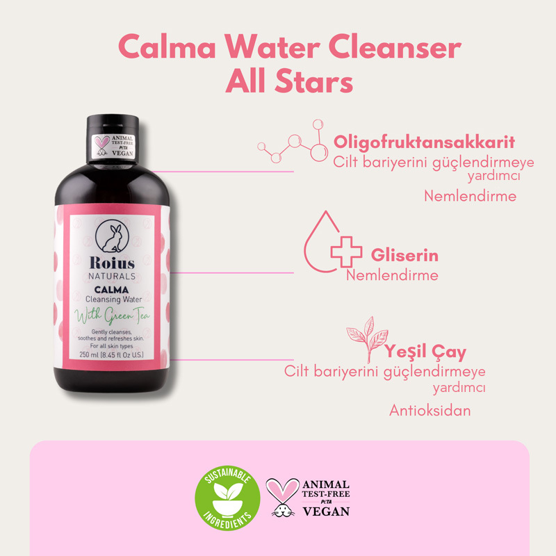Roius Naturals CALMA Yeşil Çay Özlü Yüz Temizleme Suyu 250 mlÜrün Markası: