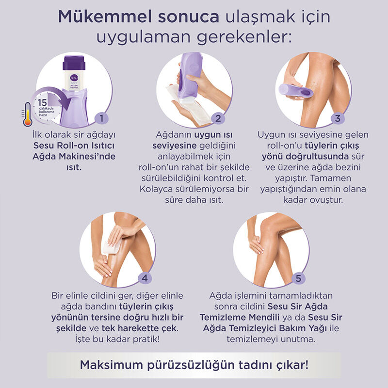 Ağdanın uygun ısı seviyesine geldiğini anlayabilmek için roll-on'un rahat bir şekilde sürülebildiğini kontrol et, kolayca sürülemiyorsa bir süre daha ısıt.